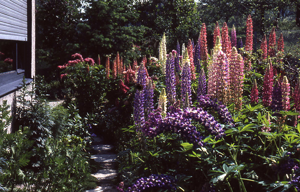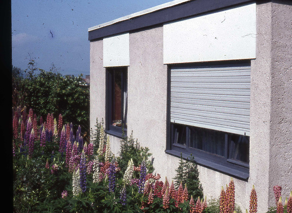 Sommer 1963: Prächtige Lupinen wachsen fast zum Fenster hinein. |