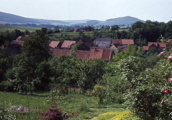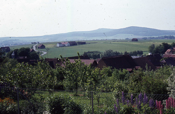 Kilometerweiter Fernblick vom Schreibtisch aus. Ein Blick aus dem Arbeitszimmer des Hausherrn aufs Unterdorf und hinüber nach Hofgeismar. |