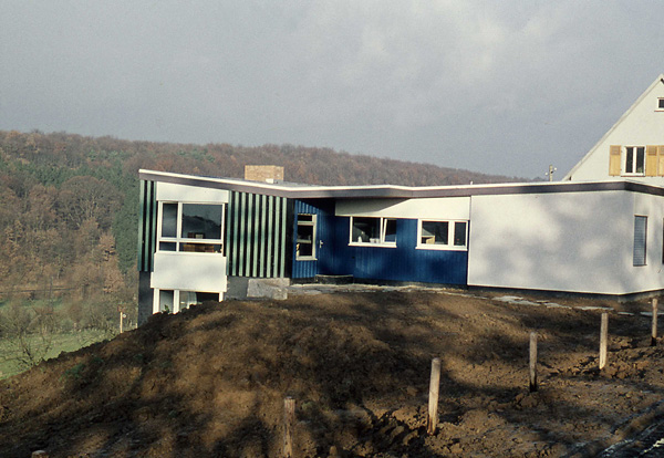 Spätsommer 1958. Blick aus Richtung Südosten. Schön zu erkennen die ursprünglich schwarz gerahmten Fenster an der Südseite. |