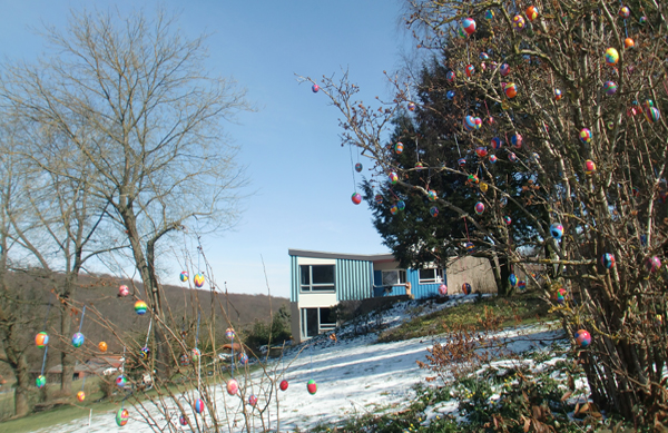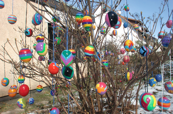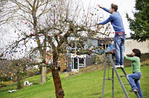 Ganz im Stile der Zeit wurde 2012 einer der Apfelbäume im Garten von "Haus Paepke" österlich geschmückt: mit 400 echten, handbemalten Eiern!